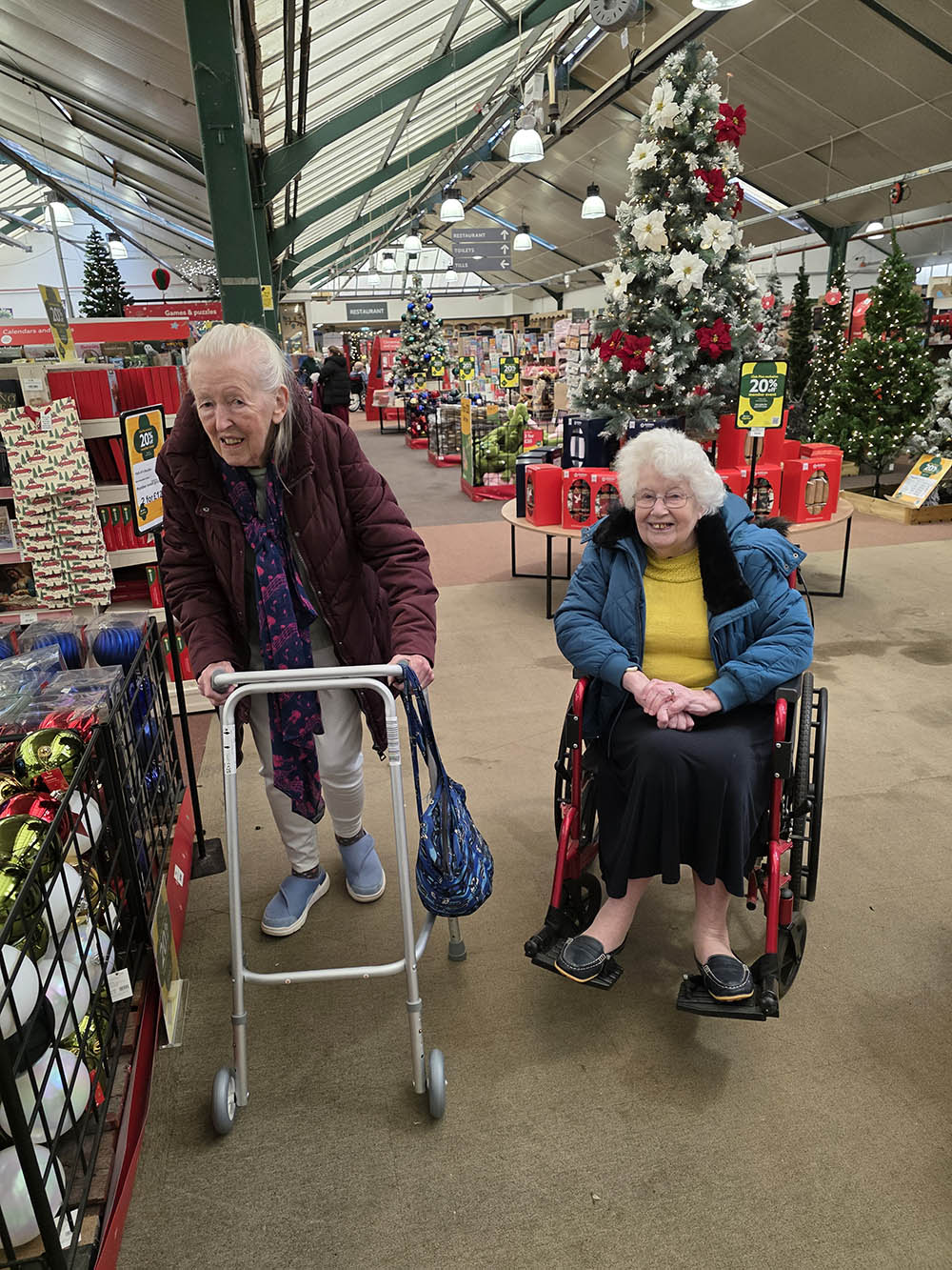 After lunch, we took our time wandering through the garden centre. With Christmas just around the corner, the displays were filled with sparkling decorations, festive lights, ornaments, and seasonal gifts. Clients enjoyed looking at the beautiful arrangements, sharing memories and pointing out decorations they particularly liked.